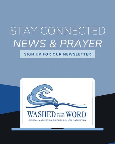 We are so grateful for the many who pray regularly for the ministry of Washed in the Word. We would be happy to send you our newsletter to help you to pray in a focused, fervent & frequent way for specific requests as Washed in the Word takes God's Word to the world.